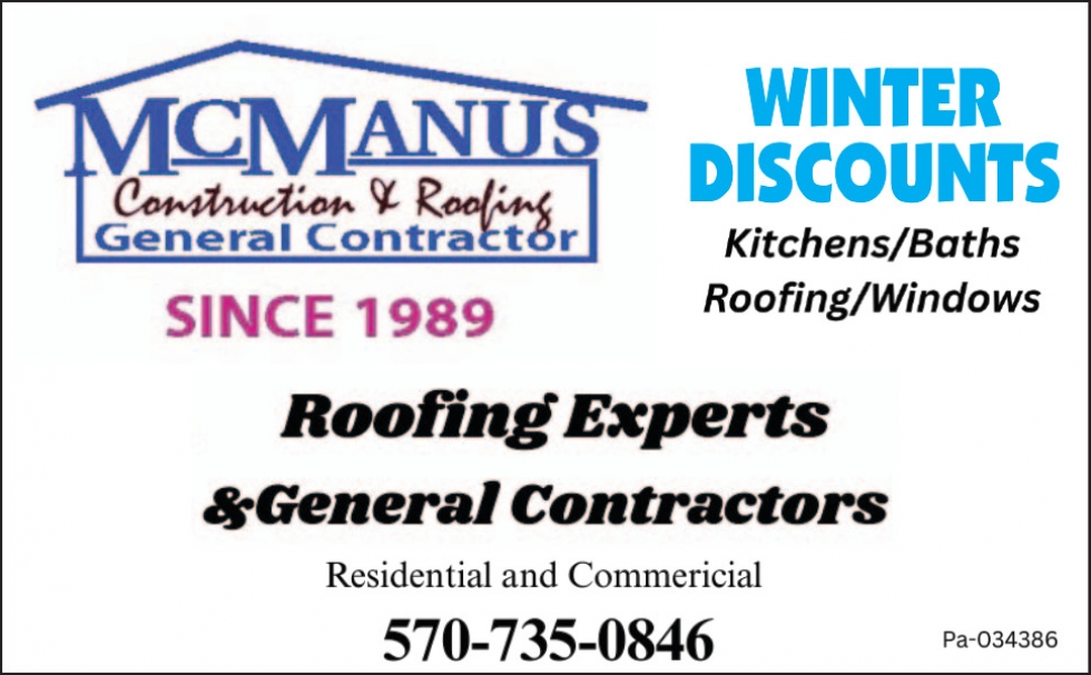 Ads for McManus Construction & Roofing in Wilkes-Barre, PA