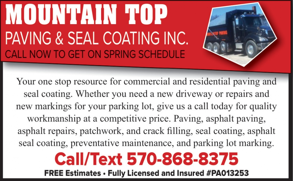 Ads for Mountain Top Paving & Seal Coating, LLC in Wilkes-Barre, PA